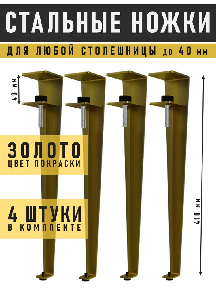 Окрашенные (в золотой цвет с гладкой текстурой) прочным полимерным покрытием, эти опоры выглядят очень стильно, богато и современно. Комплект ножек упакован в гофрокороб, что обеспечивает сохранность их в процессе транспортировки.