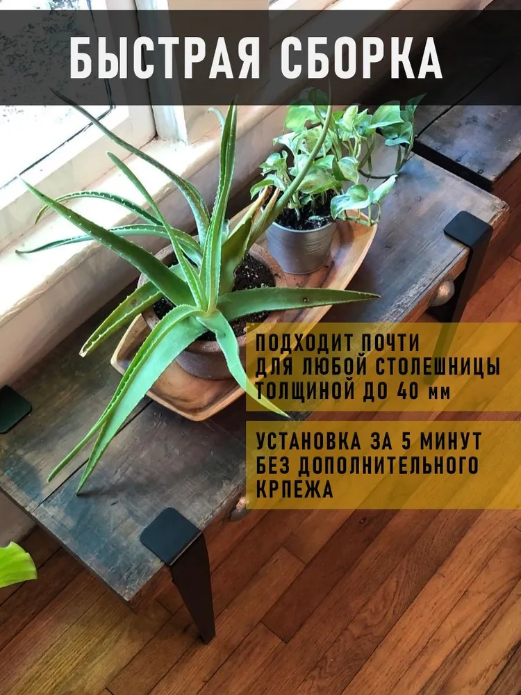 Опоры легко собираются и крепятся к столешнице с помощью зажимного винта, что делает процесс установки быстрым и простым. Они имеют пластиковые подпятники, которые предотвращают скольжение стола и защищают поверхность от царапин.
