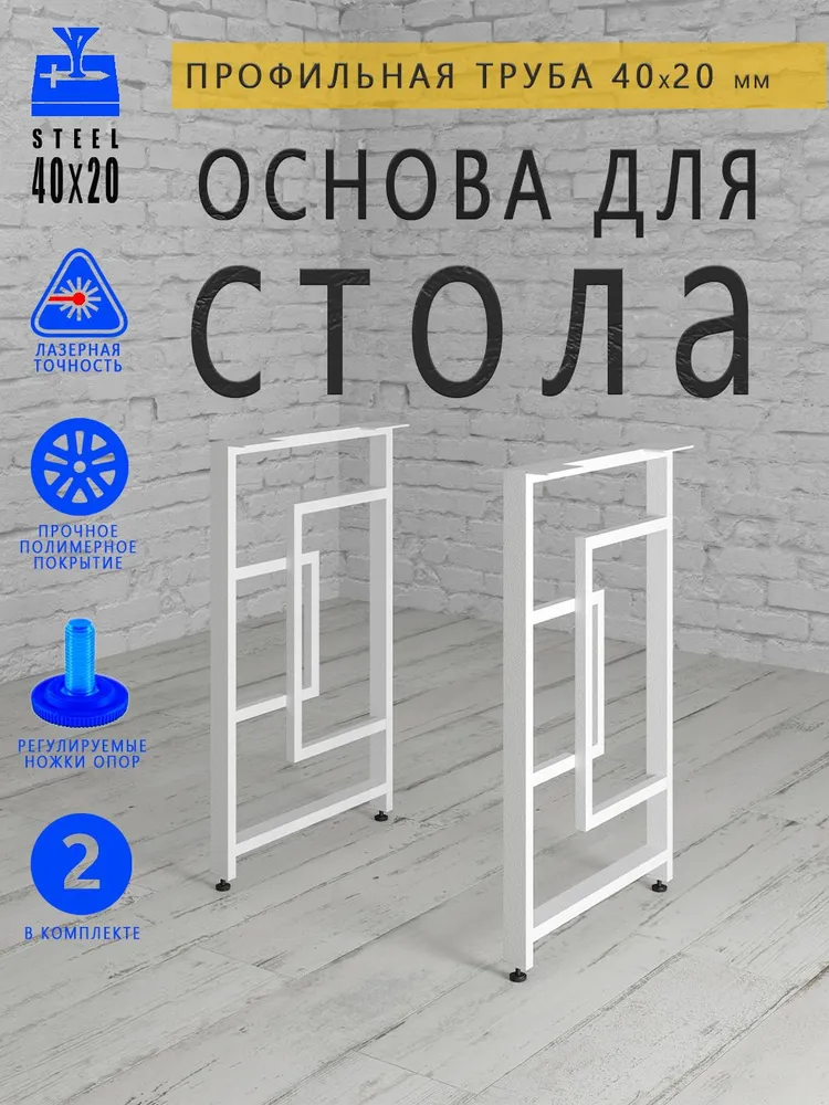 Это подстолье для стола в стиле лофт выполнено из прочного стального профиля 40х20 мм и покрыто порошковой краской в белый муар цвета RAL 9016. Габариты одной опоры - 735х450х40 мм. Ножки для стола служат для самостоятельной сборки мебели и создания интерьеров: на кухне и в гостиной, спальне и на балконе, беседке и на лоджии, кабинете или офисе, зоне барбекю, мангальной.