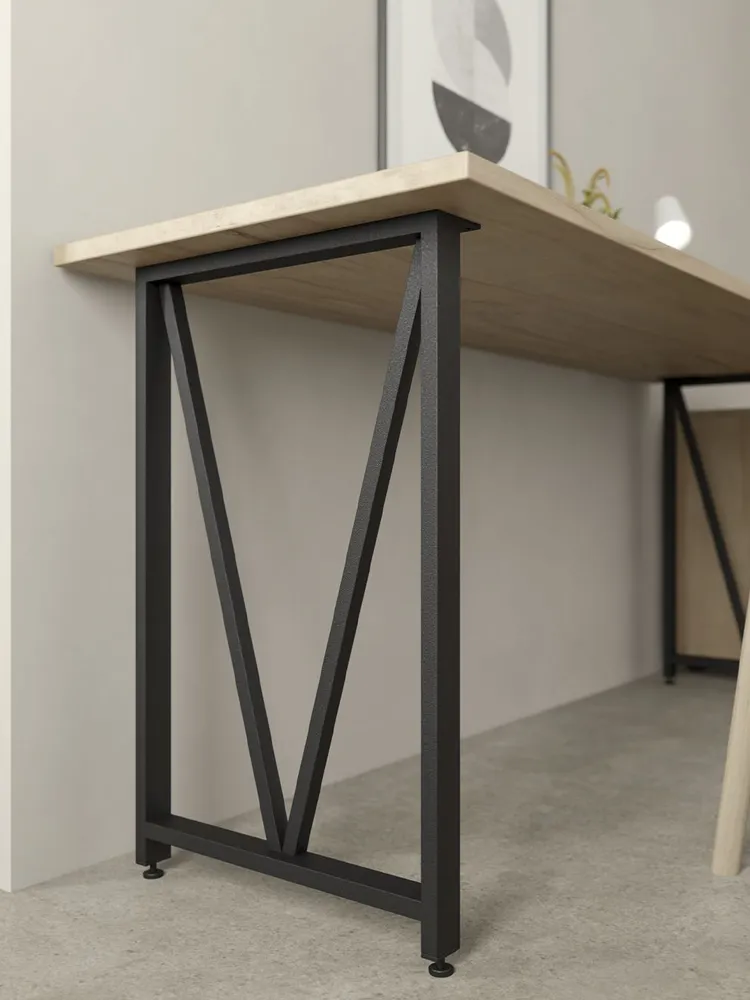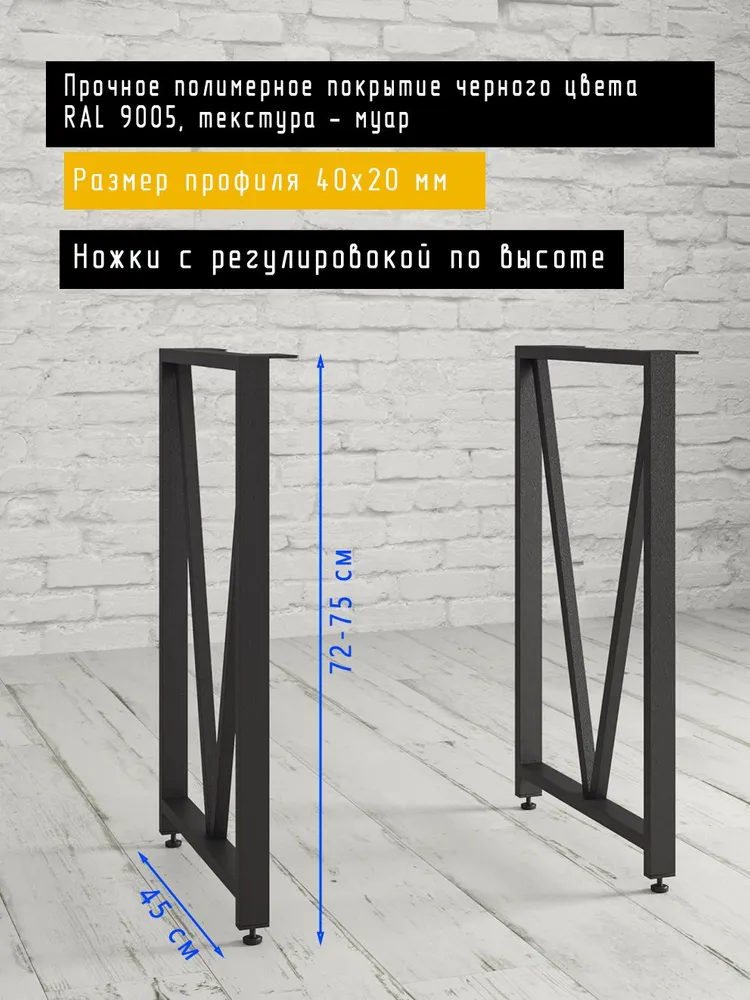 Стальные мебельные опоры для столаЭто подстолье для стола в стиле лофт выполнено из прочного стального профиля 40х20 мм и покрыто порошковой краской в черный муар цветом RAL 9005. Габариты опоры каждой опоры - 735х45х40 мм. Они служат для самостоятельной сборки мебели и создания интерьеров: на кухне и в гостиной, спальне и на балконе, беседке и на лоджии, кабинете или офисе, зоне барбекю, мангальной.