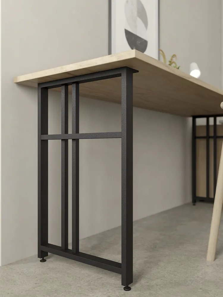 Стальные мебельные опоры для столаЭто подстолье для стола в стиле лофт выполнено из прочного стального профиля 40х20 мм и покрыто порошковой краской в черный муар цветом RAL 9005. Габариты опоры каждой опоры - 735х45х40 мм. Они служат для самостоятельной сборки мебели и создания интерьеров: на кухне и в гостиной, спальне и на балконе, беседке и на лоджии, кабинете или офисе, зоне барбекю, мангальной.